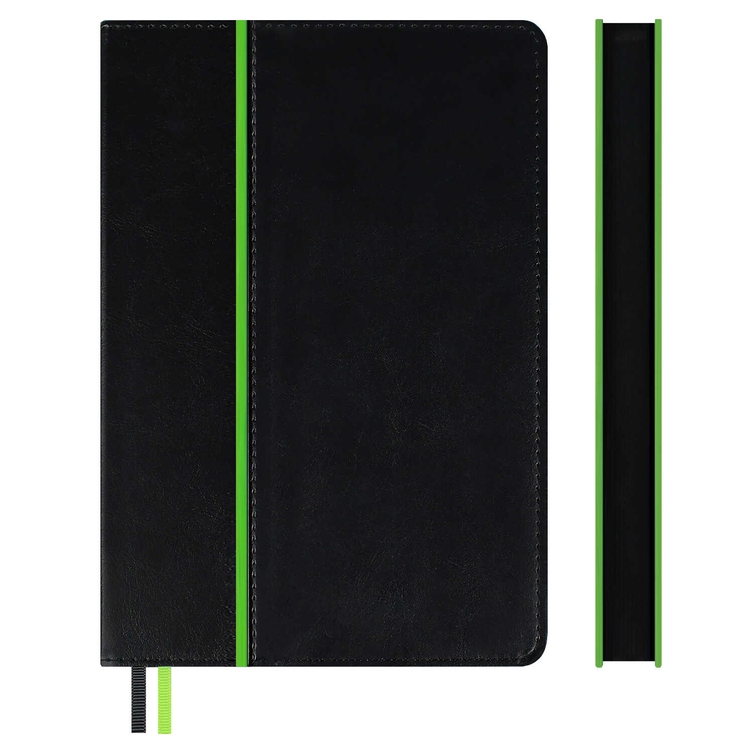 Ежедневник недатированный ESCALADA, А5, 160 л., арт. 70625/ 15 САРИФ ЧЁРНЫЙ/САЛАТОВЫЙ (кожзам: 146x211 мм, твёрдый переплёт, запаянный край, материал обложки: искусственная кожа "Сариф"; способ крепления блока: ниткошвейный; вн. блок: 160 л., кремовый офсет 70 г/м², печать в одну краску (линия), справочный материал: есть; перфорация углов блока: нет; отделка среза: окрашивание пантоном; закладка/-и: два ляссе, каптал: есть; форзац: печать пантоном, особенности: комбинированные материалы, рант контрастный, карман для мобильного телефона на лицевой части обложки)