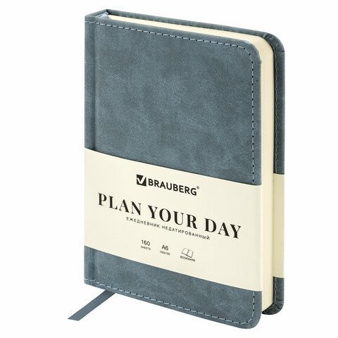 Аннотация к книге «Ежедневник А6 160л BRAUBERG 113369 Status под кожу серо-голубой»