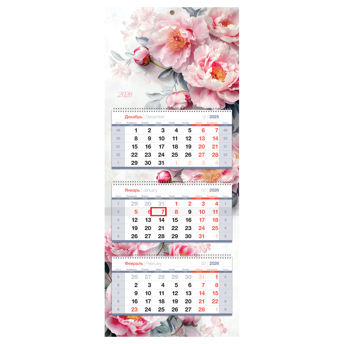 Аннотация к книге «Календарь кварт 2026г BG 380973 3бл 3гр 330*810мм Premium Пионы»