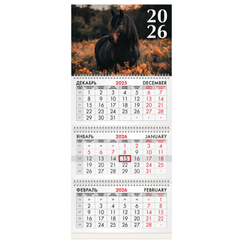 Аннотация к книге «Календарь кварт 2026г BRAUBERG 116760 3бл 3гр 295*680мм Символ года»