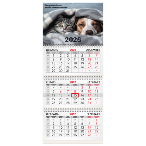 Аннотация к книге «Календарь кварт 2026г BRAUBERG 116763 3бл 3гр 290*680мм Домашние любимцы»