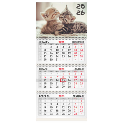 Аннотация к книге «Календарь кварт 2026г BRAUBERG 116770 3бл 3гр 295*680мм Милые котята»