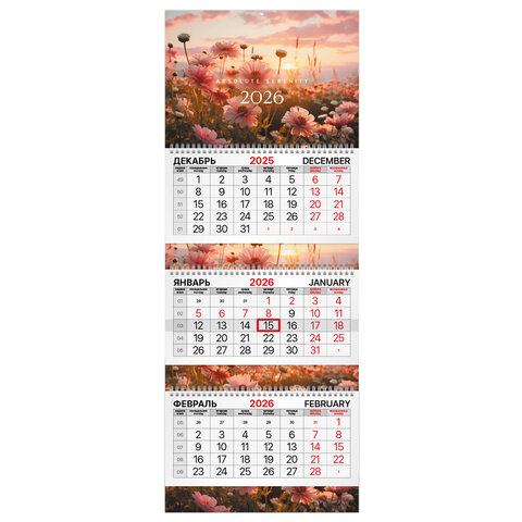 Аннотация к книге «Календарь кварт 2026г BRAUBERG 116811 3бл 3гр 290*760мм EXTRA Цветы»