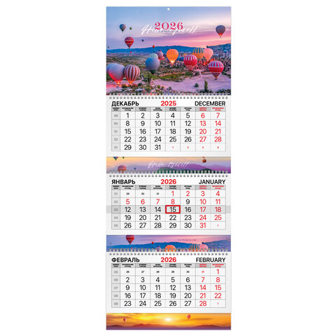 Аннотация к книге «Календарь кварт 2026г BRAUBERG 116815 3бл 3гр 290*760мм EXTRA Каппадокия»