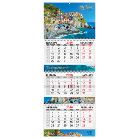 Аннотация к книге «Календарь кварт 2026г BRAUBERG 116818 3бл 3гр 290*760мм EXTRA Бухта»