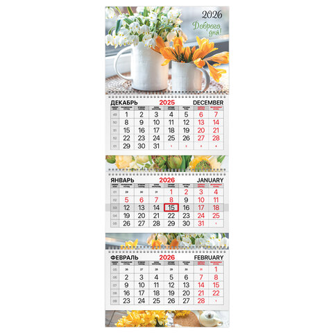Аннотация к книге «Календарь кварт 2026г BRAUBERG 116820 3бл 3гр 290*760мм EXTRA Весенние цветы»