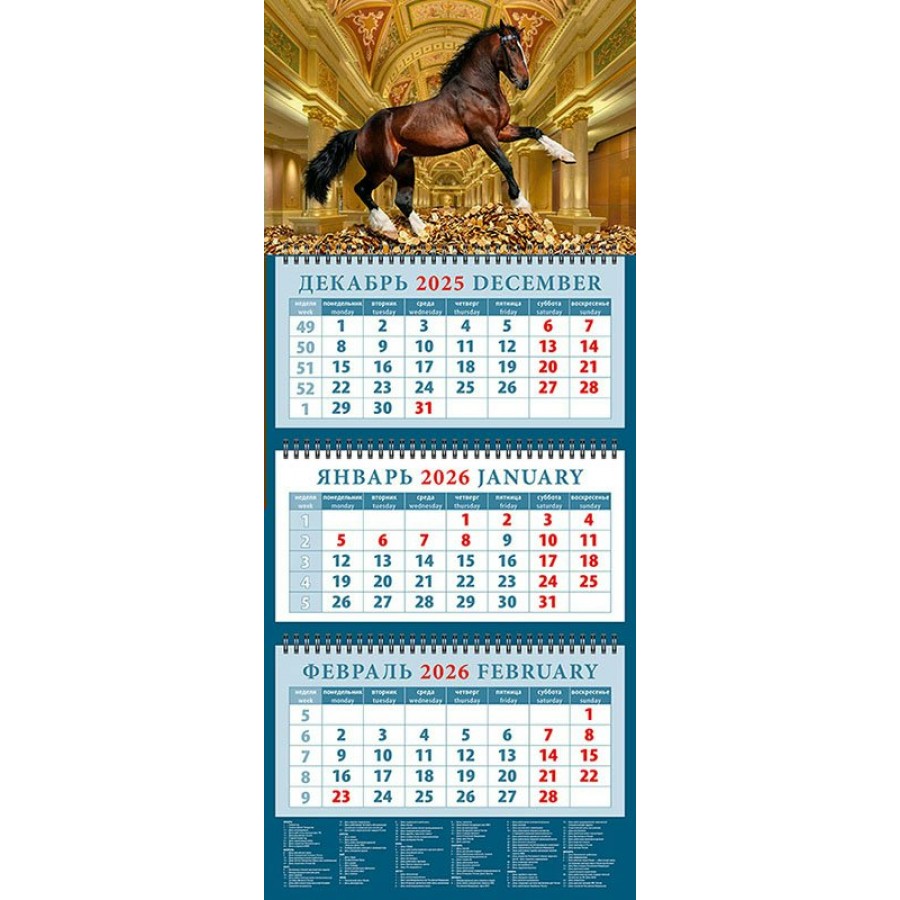 Календарь кварт 2026г ДД 14601 3бл 3гр 320*760мм Год Лошади-год удачи