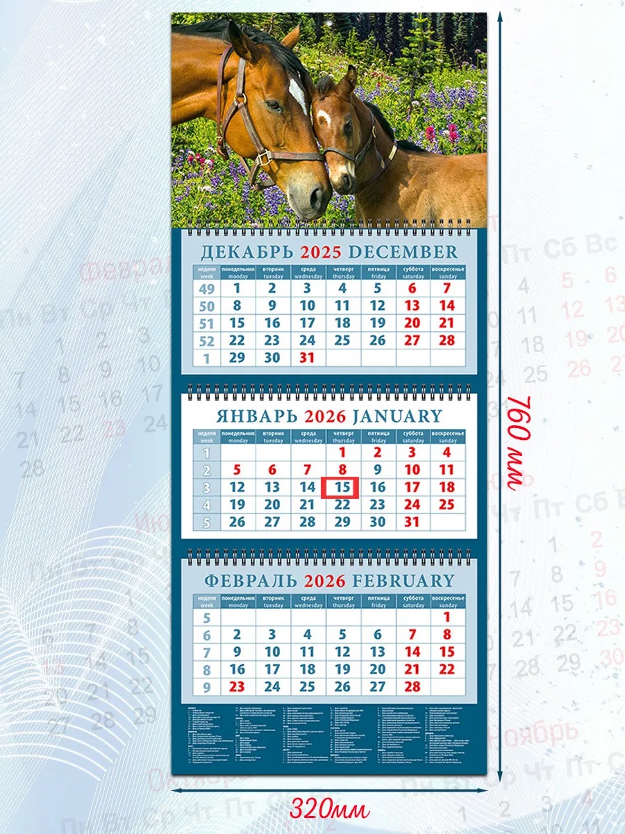 Календарь кварт 2026г ДД 14606 3бл 3гр 320*760мм Год Лошади Нежность