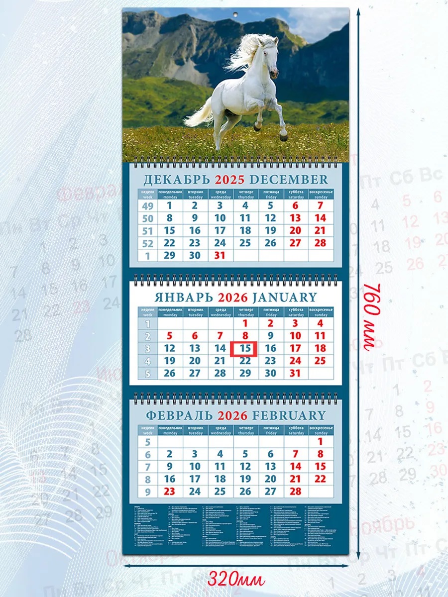 Календарь кварт 2026г ДД 14609 3бл 3гр 320*760мм Год Лошади На фоне гор