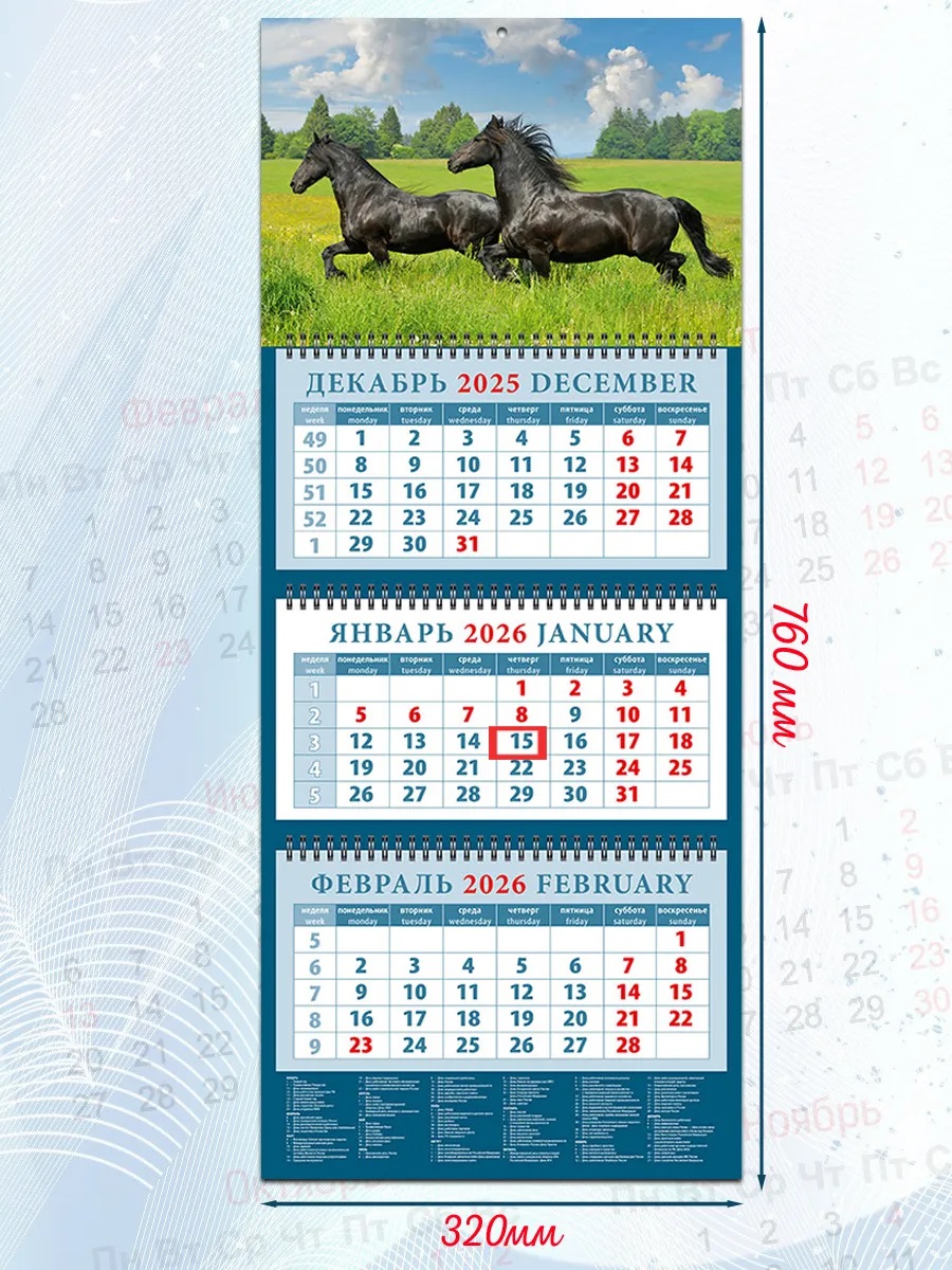 Календарь кварт 2026г ДД 14612 3бл 3гр 320*760мм Год Лошади На просторе