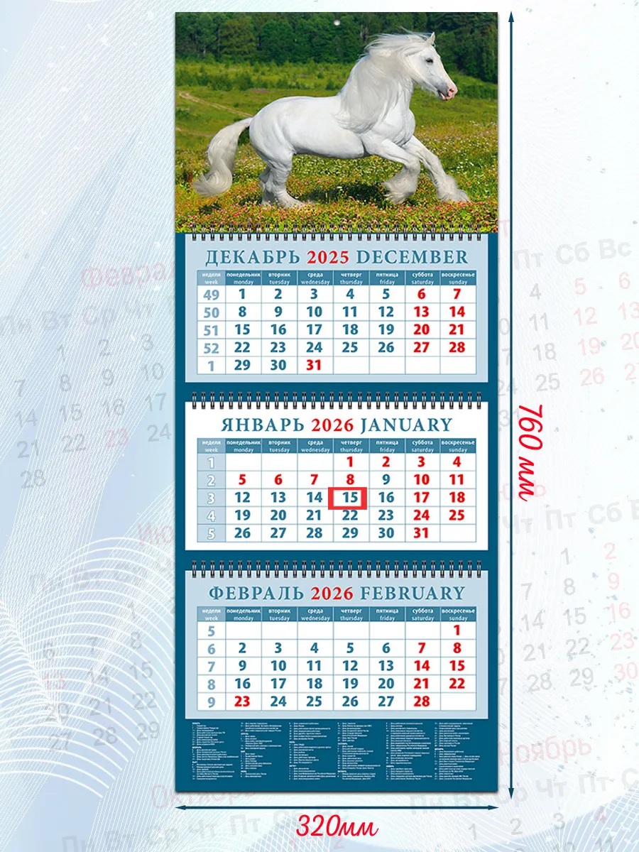 Календарь кварт 2026г ДД 14613 3бл 3гр 320*760мм Год Лошади Белый красавец