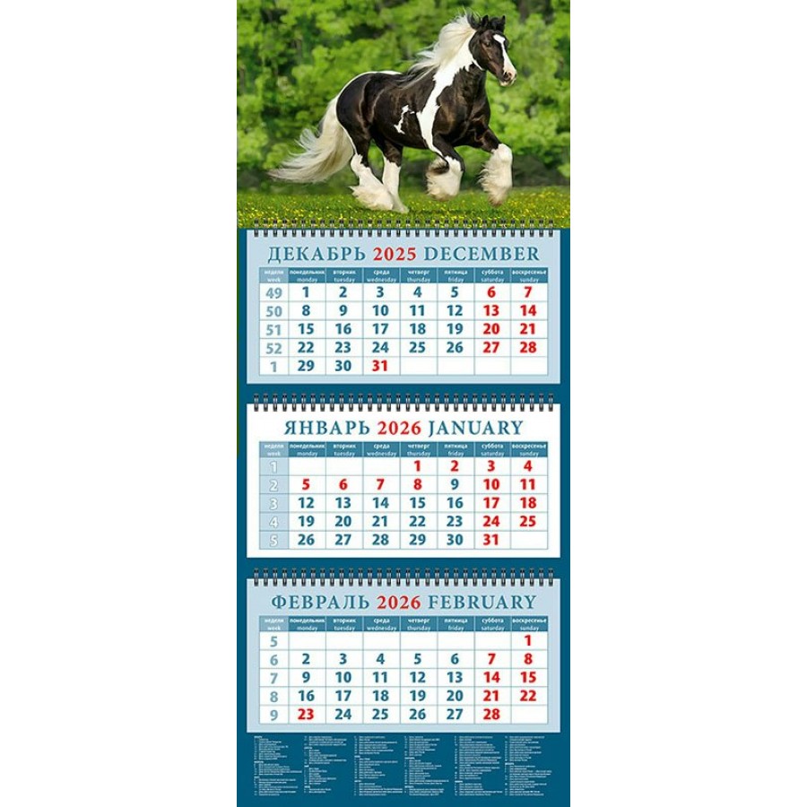 Календарь кварт 2026г ДД 14616 3бл 3гр 320*760мм Год Лошади Великолепный жеребец