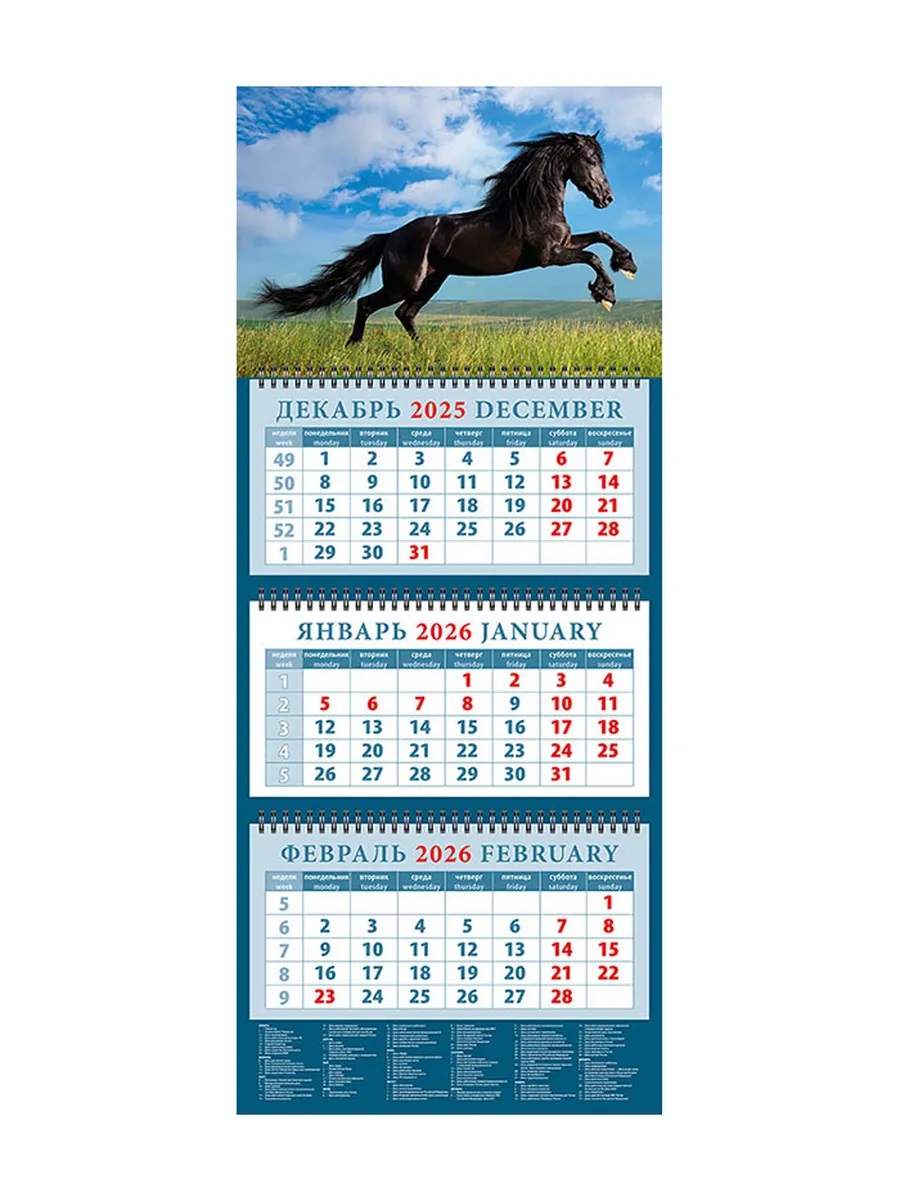 Календарь кварт 2026г ДД 14619 3бл 3гр 320*760мм Год Лошади Красота и сила