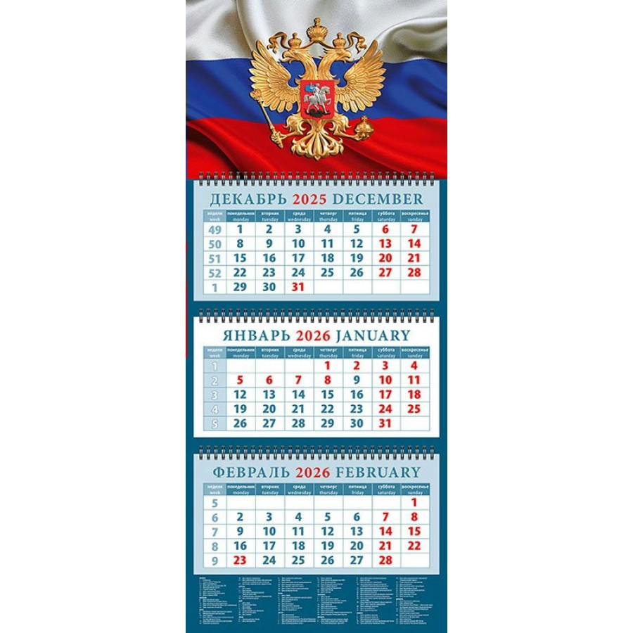 Календарь кварт 2026г ДД 14624 3бл 3гр 320*760мм Государственный флаг с гербом