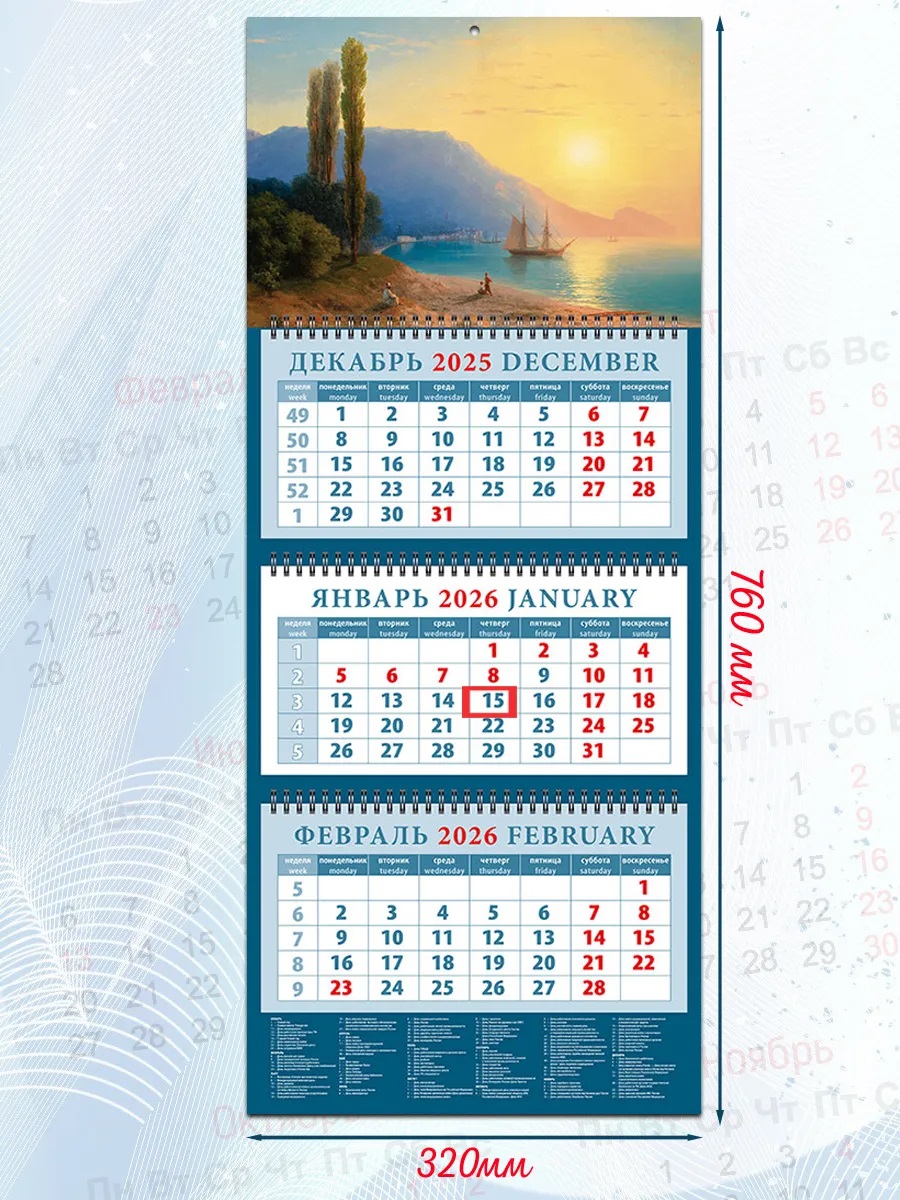 Календарь кварт 2026г ДД 14627 3бл 3гр 320*760мм Закат над Ялтой