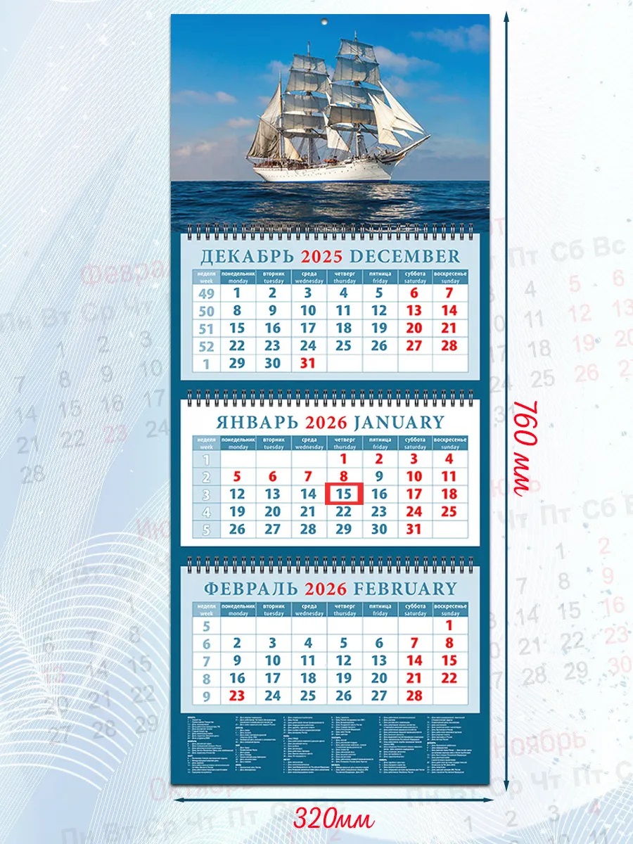 Календарь кварт 2026г ДД 14628 3бл 3гр 320*760мм Белый парусник в открытом море