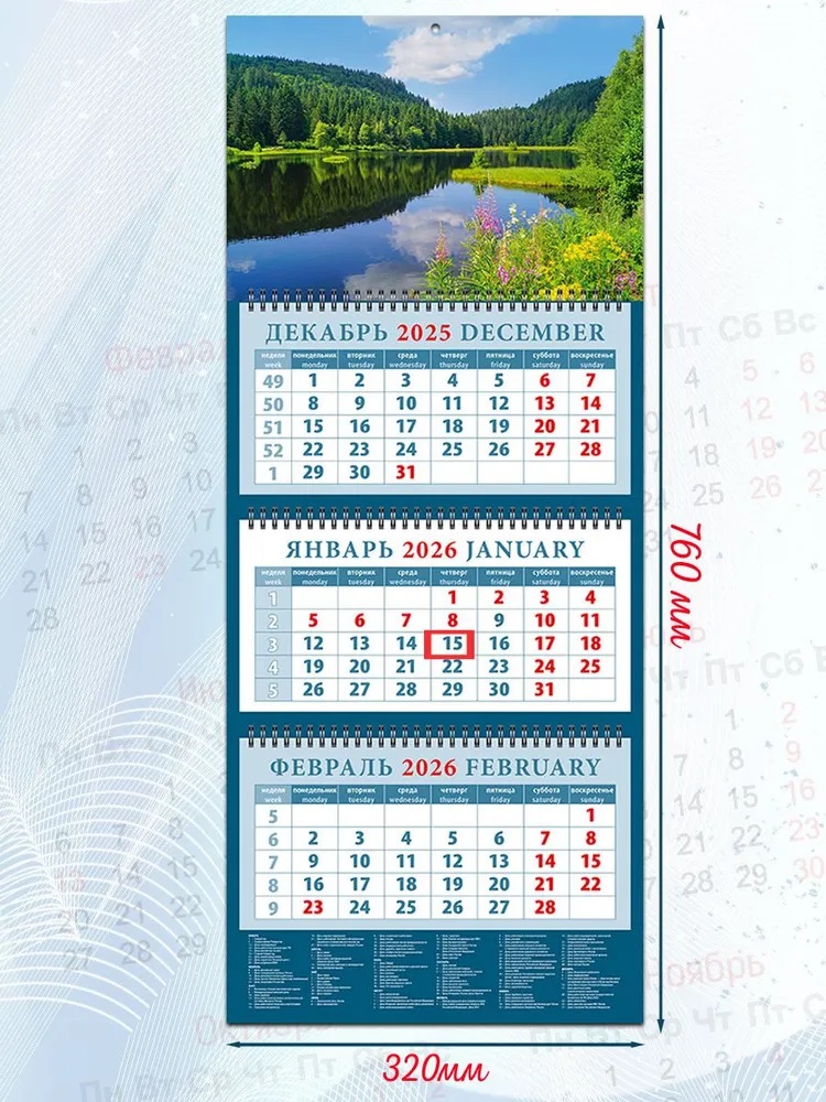 Календарь кварт 2026г ДД 14639 3бл 3гр 320*760мм Прекрасный вид