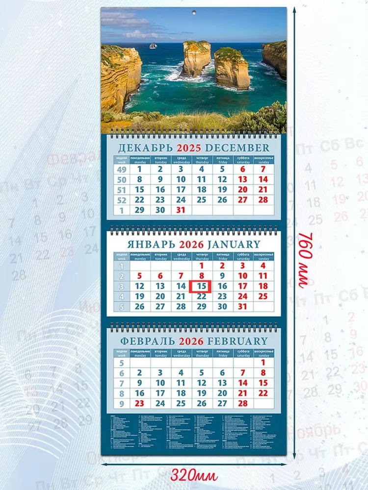 Календарь кварт 2026г ДД 14642 3бл 3гр 320*760мм Морской пейзаж