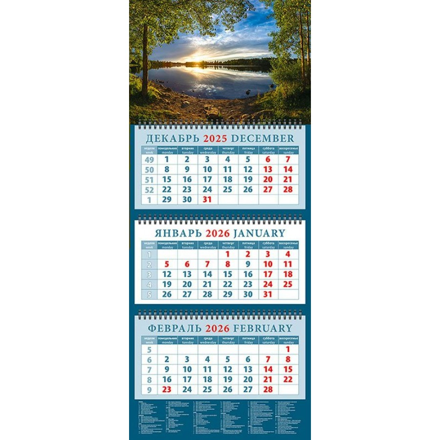 Календарь кварт 2026г ДД 14648 3бл 3гр 320*760мм Вечерний закат на озере