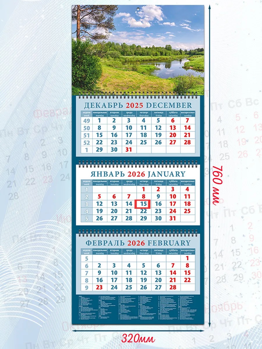 Календарь кварт 2026г ДД 14651 3бл 3гр 320*760мм Родные просторы