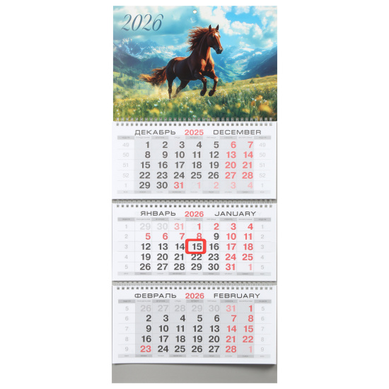 Календарь кварт 2026г KLERK 260017 3бл 3гр 300*690мм Бегущая лошадь
