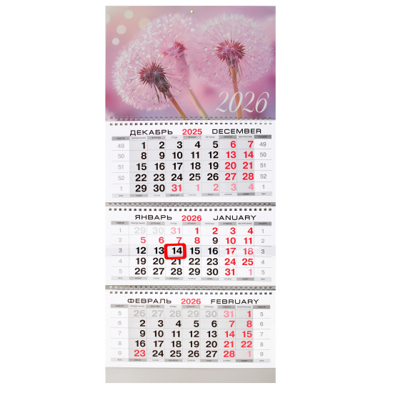 Календарь кварт 2026г KLERK 260025 3бл 3гр 300*690мм Одуванчики