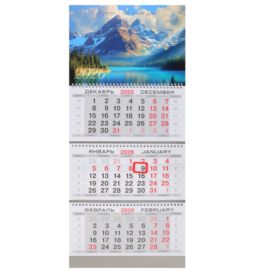 Календарь кварт 2026г KLERK 260031 3гр 3бл 300*690мм Горный пейзаж