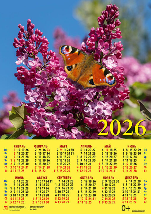 Календарь листовой А2 ДД 90611 Бабочка на сирени