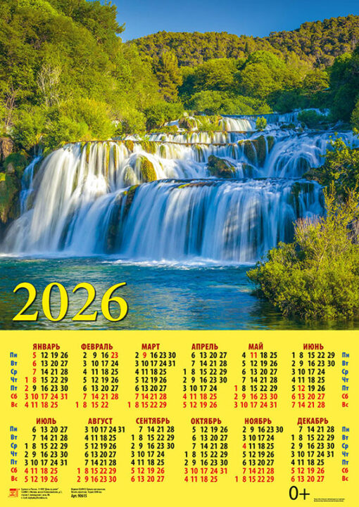 Календарь листовой А2 ДД 90615 Красивый водопад