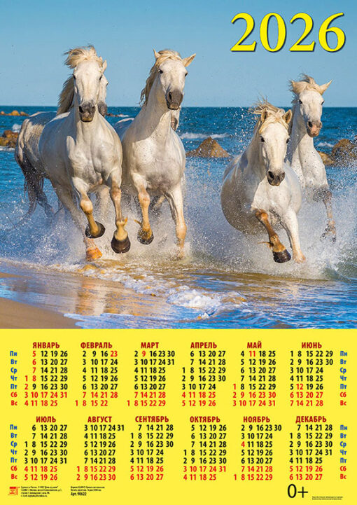 Календарь листовой А2 ДД 90622 Год Лошади Стремительная четверка