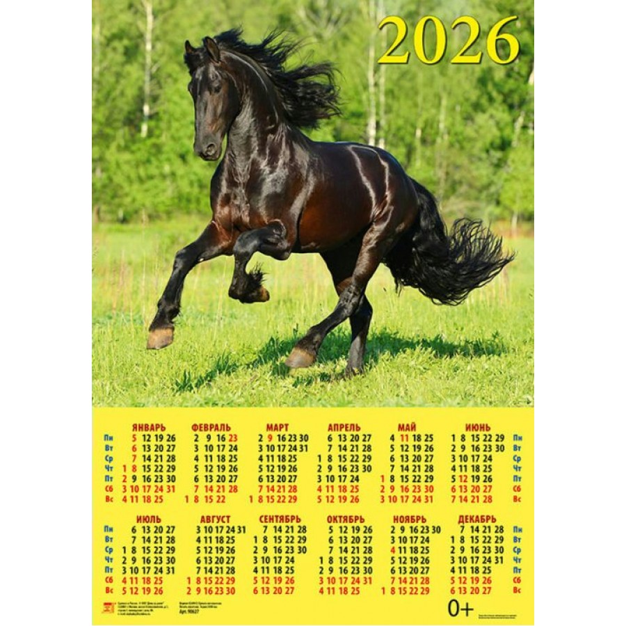 Календарь листовой А2 ДД 90625 Год Лошади Черный красавец
