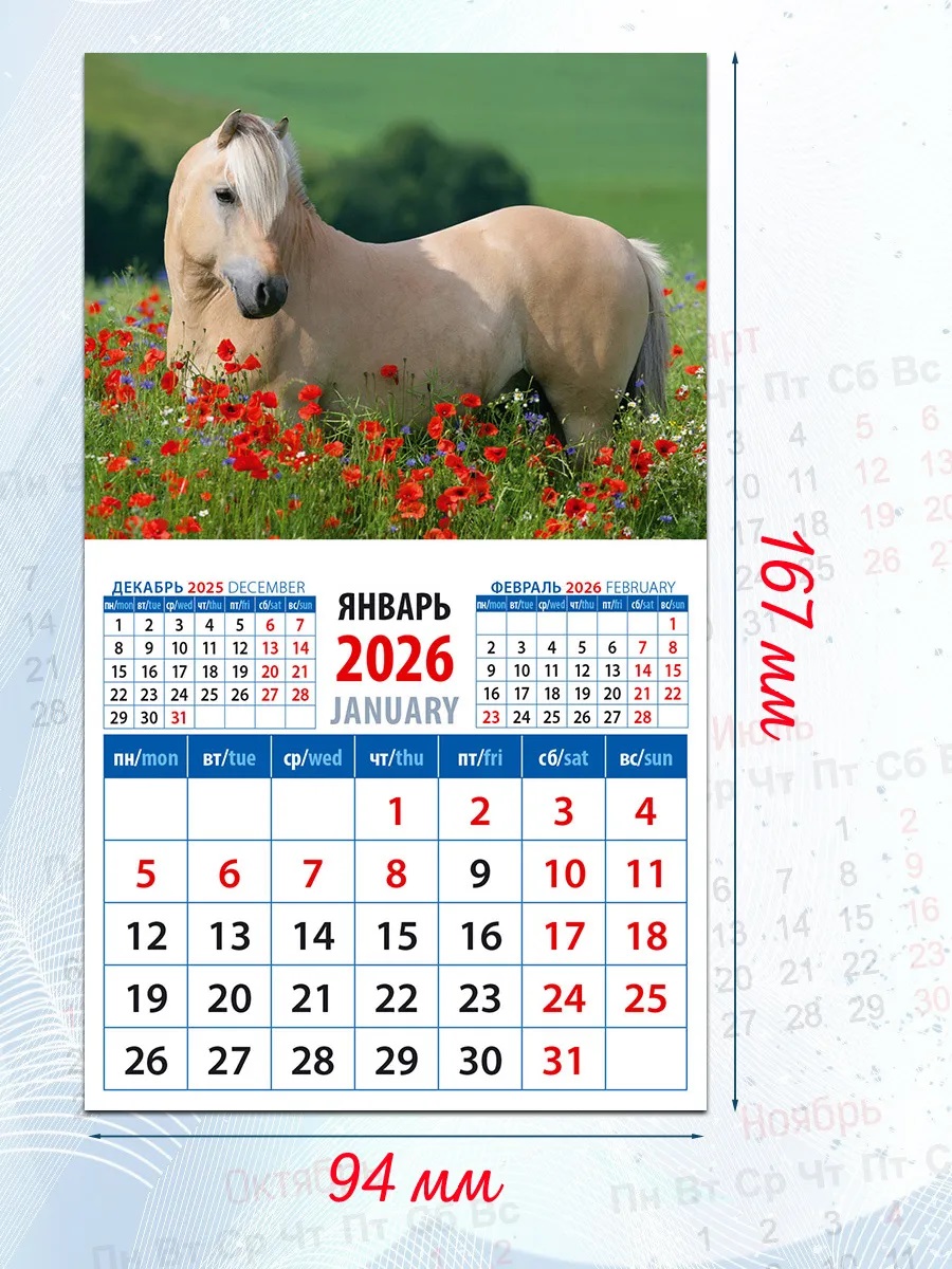 Календарь-магнит 2026г ДД 20633 94*167мм Год Лошади Среди цветов