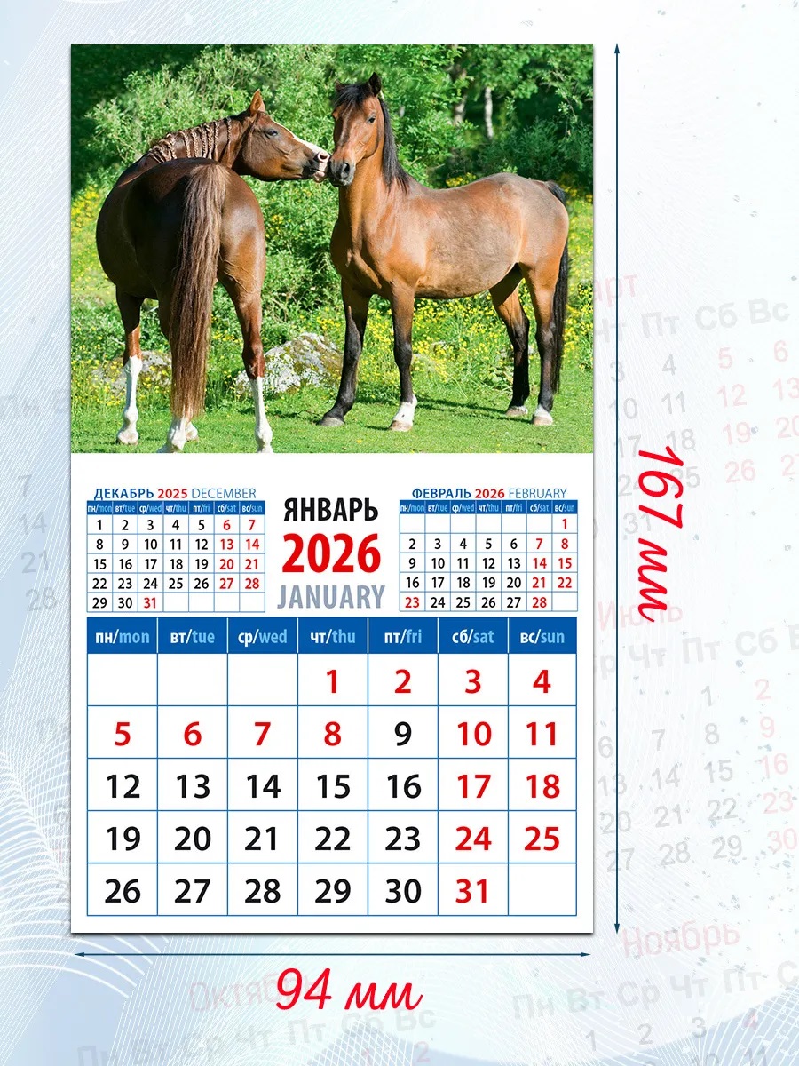 Календарь-магнит 2026г ДД 20634 94*167мм Год Лошади Сладкая парочка