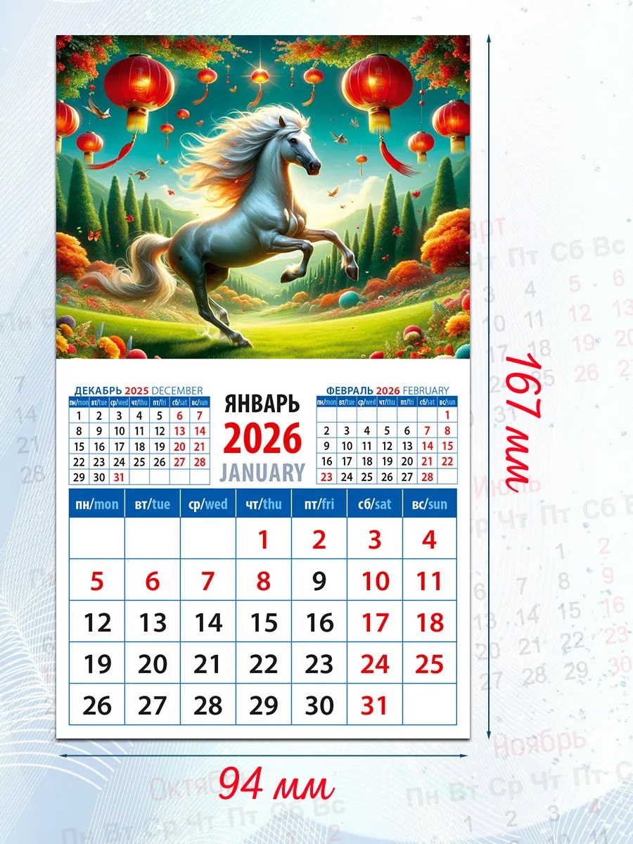 Календарь-магнит 2026г ДД 20639 94*167мм Год Лошади-год процветания