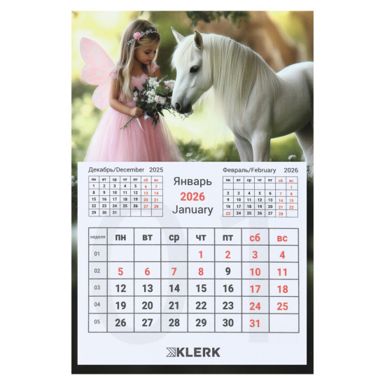 Календарь-магнит 2026г KLERK 260013 100*150мм Девочка с пони