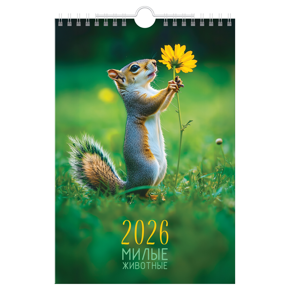 Настенный перекидной календарь на гребне bg «Милые животные» на 2026 год станет не только помощником в планировании, но и украшением пространства. Размер — 17*25 см. Календарь изготовлен из мелованной бумаги плотностью 105 г/м2 с полноцветной печатью, что обеспечивает яркость иллюстраций.