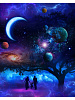 Холсты с красками 40х50 СЕМЬЯ НА ФОНЕ КОСМОСА (Арт. ХК-6882)