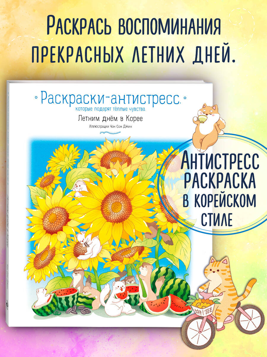 Аннотация к книге «Летним днем в Корее Раскраски-антистресс, которые подарят теплые чувства»