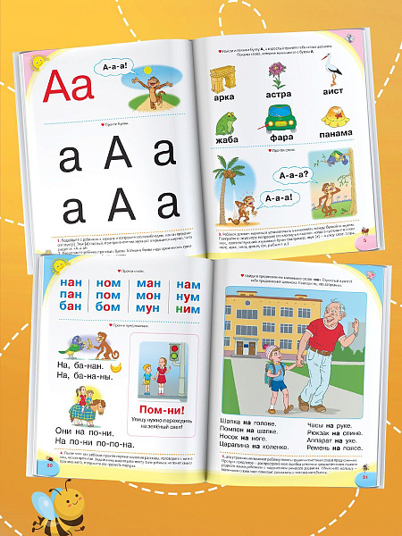 В этой книге, в отличие от традиционных пособий, буквы представлены не по алфавиту, а в той последовательности, в которой они появляются в речи малыша: начиная от простых для произношения и заканчивая сложными. Таким образом можно обучать грамоте не только дошкольников, но и малышей, начинающих произносить свои первые слова, а также детей, испытывающих проблемы с речью. Забавные персонажи, которых вы встретите на страницах книги, дают малышу зрительные и двигательные подсказки, что значительно облегчает один из самых сложных процессов – соотнесение звука с буквой. Благодаря ярким картинкам и крупным буквам для чтения и обводки, процесс обучения станет простым, увлекательным и максимально результативным.