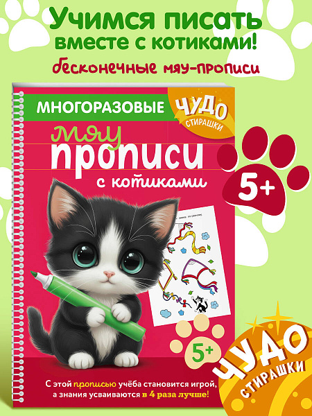 Многоразовые мяупрописи с котиками Для детей 5-6 лет