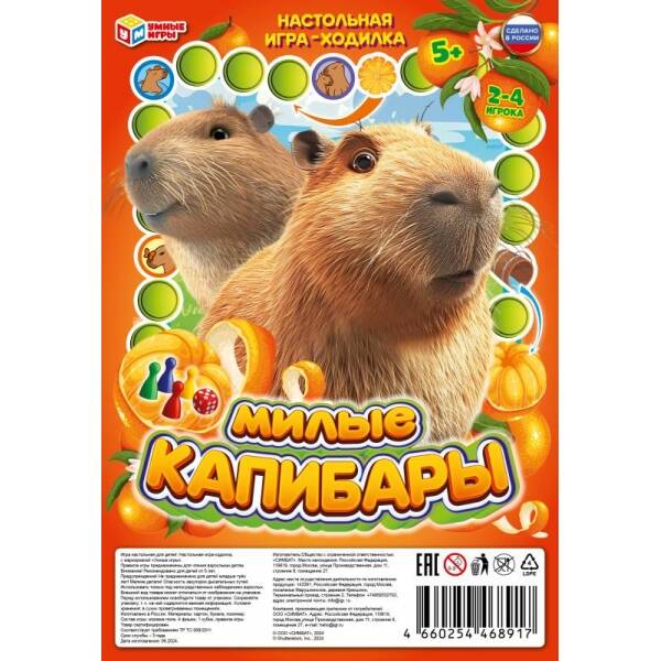 Аннотация к книге «Настольная игра-ходилка Милые капибары на блистере малая 180х285х15 мм Умные игр»