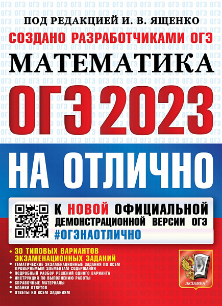 Пособие содержит тематические экзаменационные задания (более 1000 задач) по всем проверяемым элементам содержания Основного государственного экзамена по математике, 30 типовых вариантов экзаменационных заданий 2023 года, подробный разбор решений одного варианта, инструкцию по выполнению работы, справочные материалы, бланки ответов и ответы ко всем заданиям.