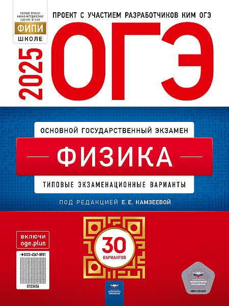 • 30 типовых экзаменационных вариантов, составленных в соответствии с проектом демоверсии КИМ ОГЭ по физике 2025 года;
