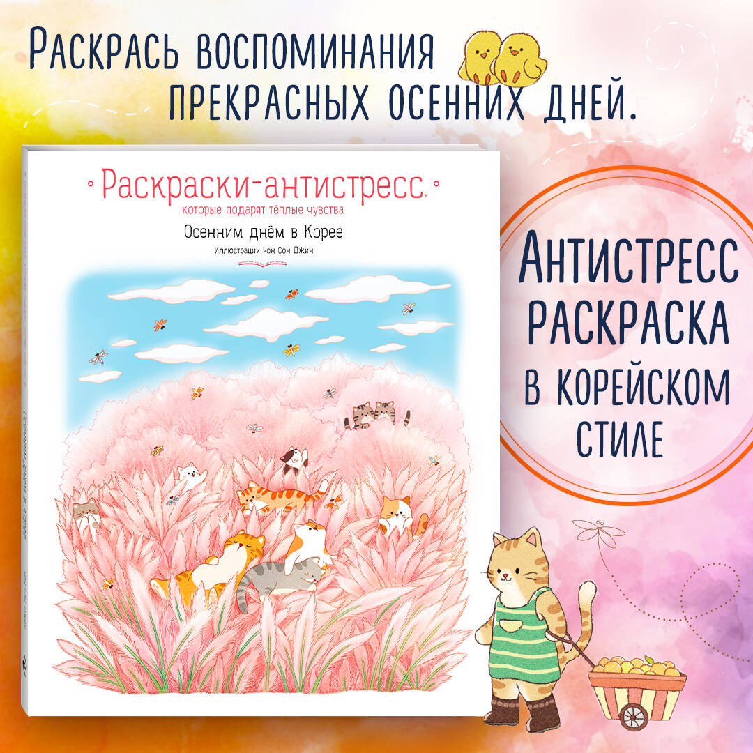 Аннотация к книге «Осенним днем в Корее Раскраски-антистресс, которые подарят теплые чувства»