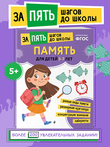 Современная школа предъявляет очень высокие требования к детям, которые поступают в 1 класс, поэтому дошкольная подготовка является важнейшим этапом для успешного старта. Эта развивашка, предназначенная для детей 5, 6, 7 лет, поможет ребенку развить зрительную и моторную память и усовершенствовать умственные способности. Каждая страница тренажера предлагает множество интересных и разнообразных упражнений, которые помогут не только потренировать, но и протестировать навык запоминания у дошкольника.