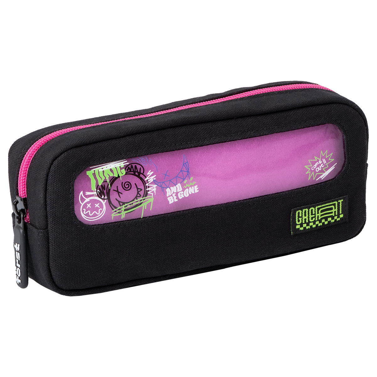 Благодаря резиновому бегунку изделие на молнии удобно открывать. Прозрачное окошко на лицевой стороне помогает быстро найти нужный предмет и не искать его внутри пенала.