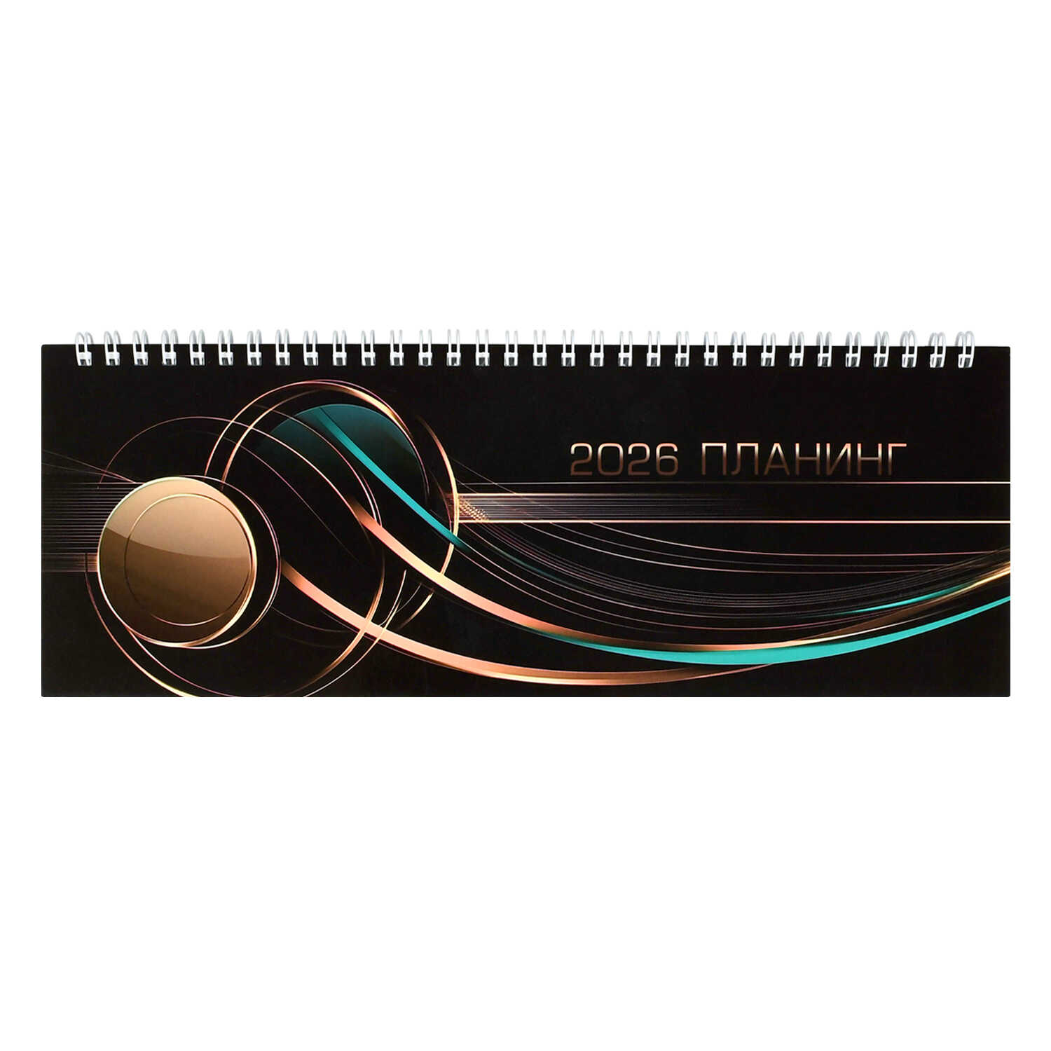 Планинг датированный 2026 арт. 71583 ЗОЛОТО НА ЧЁРНОМ / 290х100 мм, 64 л., гребень по длинной стороне, полноцветная печать, глянцевая ламинация. Блок - белый офсет, 65 г/м², печать в одну краску,