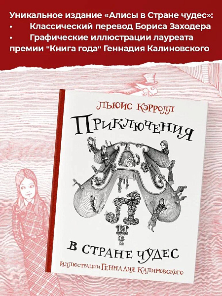 Перед вами уникальное издание в классическом пересказе Бориса Заходера и с рисунками мастера книжной иллюстрации Геннадия Калиновского, неоднократно получавшего награды за свои работы. Художник виртуозно и остроумно передал атмосферу волшебного и загадочного мира, в котором оказываются Алиса и другие герои сказки.