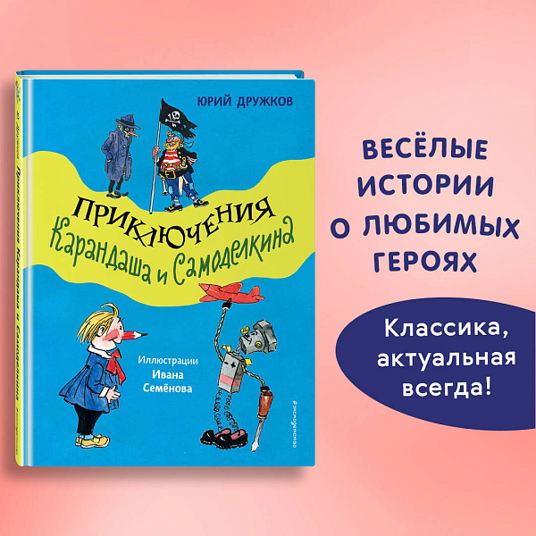 Почти 70 лет назад писатель Юрий Дружков и художник Иван Семёнов придумали для журнала «Весёлые картинки» двух чудесных героев: волшебного художника Карандаша и железного мастера Самоделкина. Остроумные, добрые, находчивые человечки так полюбились читателям журнала, что Юрий Дружков написал о них книгу «Приключения Карандаша и Самоделкина». Весёлые человечки с помощью верных друзей побеждают коварных разбойников: пирата Буль-Буля и шпиона Дырку. Первым иллюстратором книги стал, конечно, Иван Семёнов.