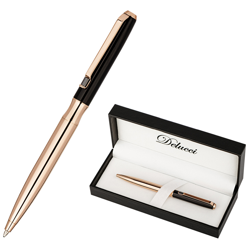 Ручка шар бизнес-класса Delucci 11328 1мм корп черн/золот поворот футляр син